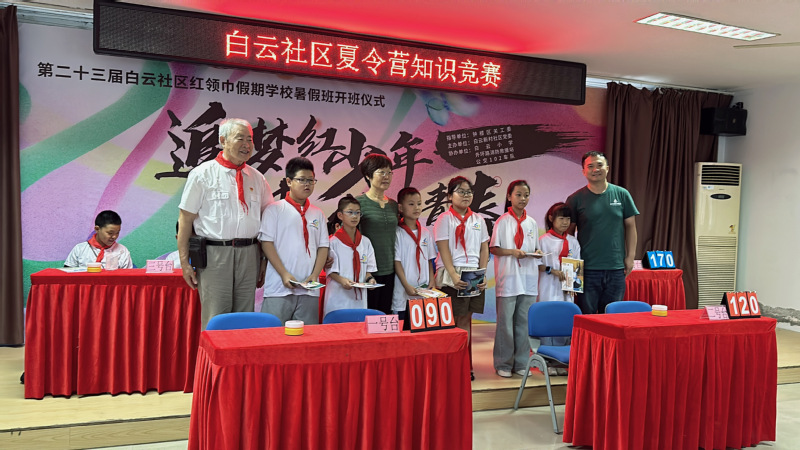 实地参与“开班式”。旅游与康养学院的师生志愿者参与白云社区第二十三届红领巾假期学校暑期班的开班式,为“白云娃”打造一个科普学习和拓展实践的课外学习平台,并为参加知识竞赛的孩子们“现场辅导”,助力孩子们拓展素质与眼界,培养团队合作精神和社交能力,钟楼区关工委副主任张春莲女士、夏令营创始人张葵先生、白云小学副校长邱婷女士、钟楼区消防救援站副站长眭晓东、常州市102公交车队党支部书记眭亚健共同参加并担任校外辅导员。