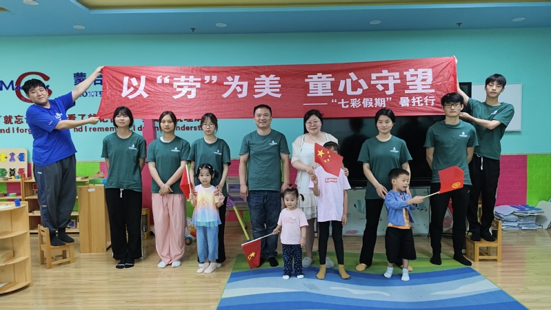 近年来,旅游与康养学院积极探索“双减”政策下的合作教育模式,推动课后服务基地的常态化运行,助力实现家校社协同共育。实践团通过将思政课与暑期社会实践活动结合,缓解部分家庭暑期子女看护的现实需求,既与小朋友们共度七彩假期,又与家长们共绘民生幸福画卷。