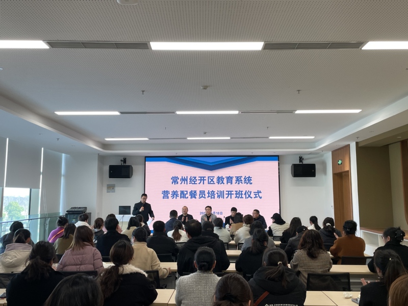 3月18日,由常州市经开区教育和文体旅局牵头,我校具体承办的常州市经开区教育系统2025年营养配餐员培训在该区文体活动中心顺利开班。来自常州经开区教育和文体旅局副局长唐俊、常州工业职业技术学院党委委员、副校长吴丽云、常州经开区社区培训学院党委书记、院长周建明、常州工业职业技术学院旅游与康养学院党总支书记王迎春以及来自全区55所学校的近60名营养配餐员参加了开班典礼。
