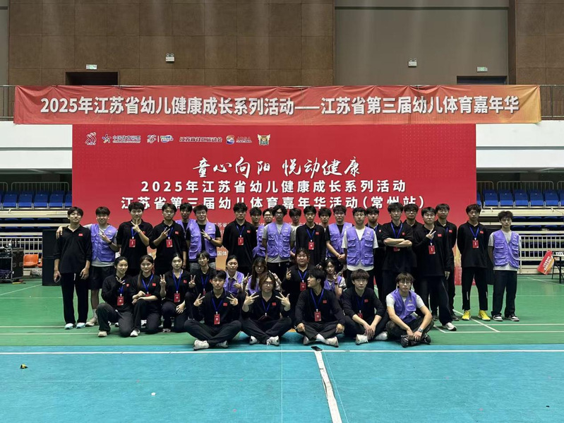 近日,“童心向阳 悦动健康”2025年江苏省幼儿健康成长系列活动暨江苏省第三届幼儿体育嘉年华活动(常州站)圆满举行。本次活动由江苏省教育厅、江苏省体育局、江苏省广播电视总台等单位联合主办,层次高、规模大、影响力广。常州工业职业技术学院旅游与康养学院应主办方邀请,选派了35名休闲体育专业优秀学生担任赛事裁判员和志愿者,全程参与了活动的执裁与服务工作。