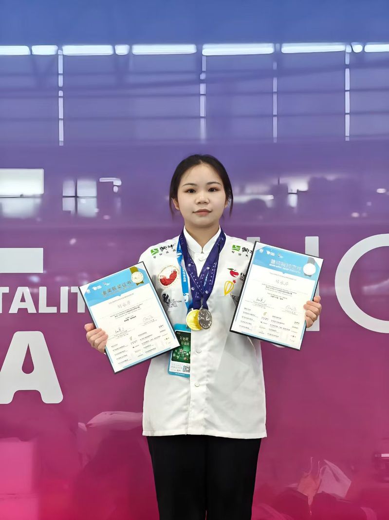 近日,从国际烹饪赛事现场接连传来捷报,我校19烹调331班优秀毕业生刘永芹,在2025年下半年的两项国际顶尖赛事中力挫群雄,先后斩获两项金奖和一项银奖,以精湛技艺闪耀赛场,为母校增光添彩。她的成功之路,是我校深化产教融合、校企协同育人模式的生动实践与丰硕成果。