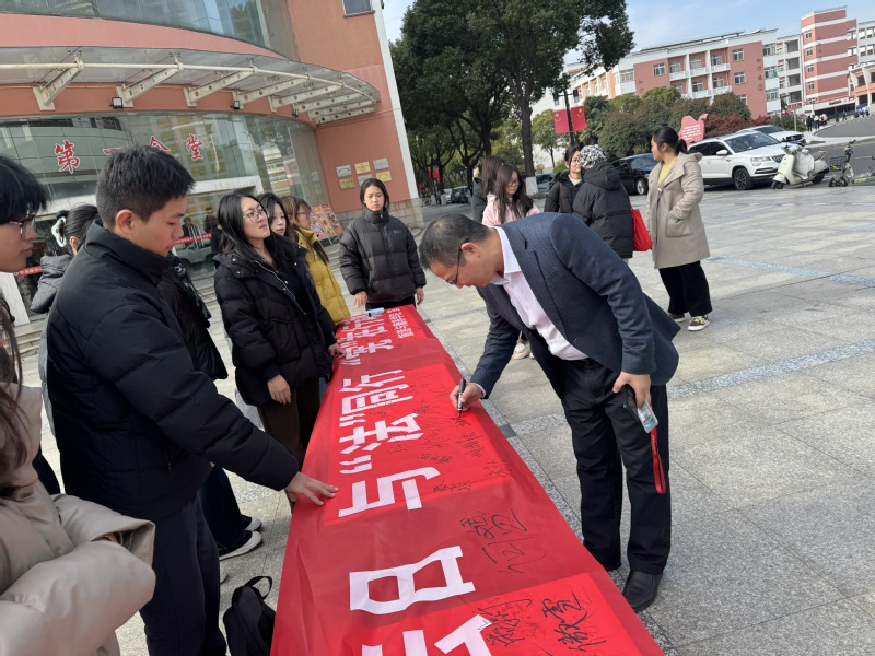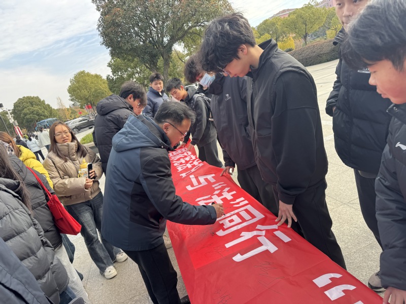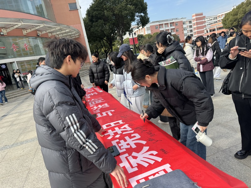 活动现场,部分老师和学生手持签字笔,有序在长约5米的主题横幅上郑重签下自己的名字,每一个签名都代表着一份承诺、一份责任。马克思主义学院院长李飞在签字后表示:“这样的活动很有意义,签字的过程不仅是一种仪式,更让我真切感受到宪法的严肃性,以后会多学习宪法知识,用法律保护自己的合法权益。”学生代表小李说道:“通过今天的活动,我明白了宪法不仅是书本上的条文,更是保护我们成长的‘护身符’,今后会争做宪法的忠实崇尚者和自觉遵守者。”同时,旅游学院法治宣讲团成员还在活动现场通过法治知识问答、宪法条文诵读等互动形式,让同学们在轻松愉悦的氛围中学习宪法知识,增强法治意识。