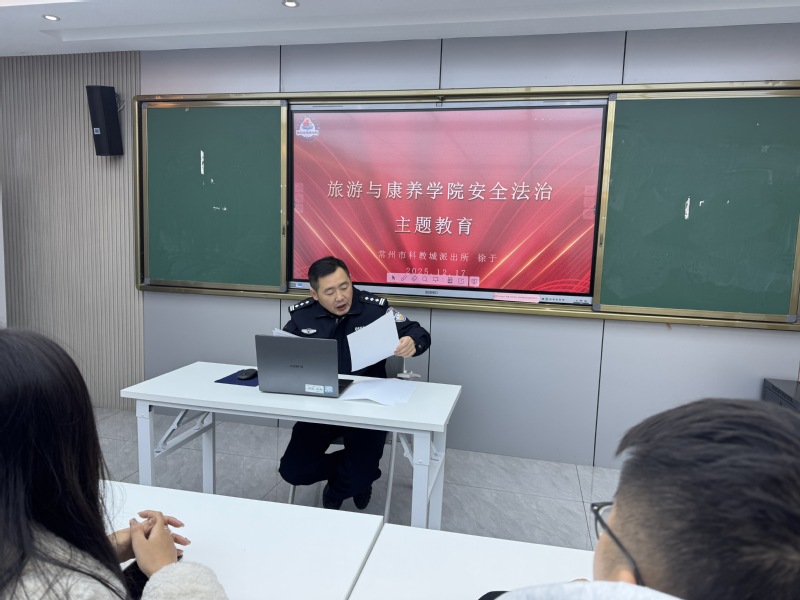 为充分发挥班级治保委员在校园安全工作中的骨干作用,打造一支懂安全、会宣传、能应急的学生安全管理队伍,推动校园安全法治教育精准落地,12月17日,旅游学院特邀请常州科教城派出所徐于警官,面向全院各班级治保委员开展了一场专项安全法治教育培训。会议由辅导员陆成龙老师主持。