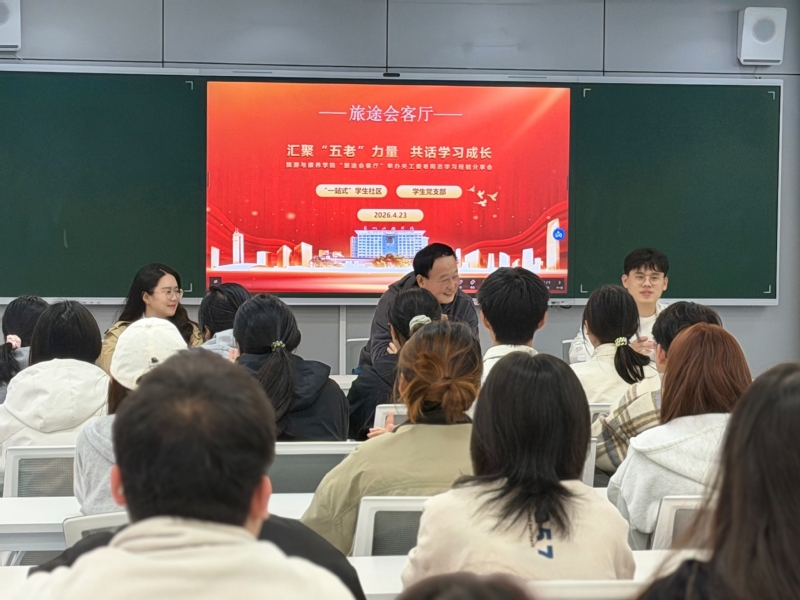 为充分发挥关工委“五老”育人优势,引导学生养成健康的生活习惯、保持良好的心理状态、提升社会适应能力。4月23日,旅游与康养学院在“一站式”学生社区举办“旅途会客厅”专题交流会。学院特邀关工委老同志、原学院党总支书记高振发书走进学生社区,与同学们面对面交流成长发展过程中的经验,共话身心和谐与成长之道。辅导员杜嘉豪、许媛及各班学生代表共同参加了本次活动。