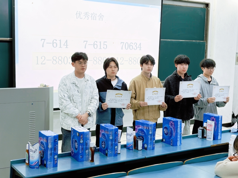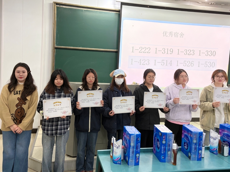 会议最后,许媛和杜嘉豪老师为在公寓文明评比中表现突出的宿舍颁发荣誉证书和奖品,勉励获奖宿舍珍惜荣誉、再接再厉,发挥榜样示范作用,带动更多同学共同建设文明宿舍。