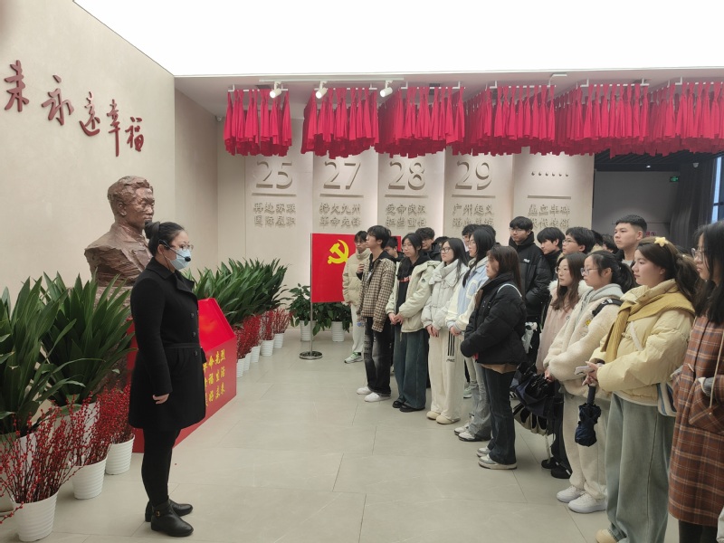 步入纪念馆,张太雷半身铜像巍然矗立,“谋将来永远幸福”的手书字迹遒劲有力。跟随讲解员的详细讲述,师生们沿着展陈脉络,系统地了解了张太雷29年短暂却壮丽的一生。一幅幅历史图片、一封封泛黄家书、一件件珍贵文物,生动再现了这位中国青年运动的卓越领导人如何用生命践行“愿化作震碎旧世界惊雷”的誓言,让在场学子深受震撼。