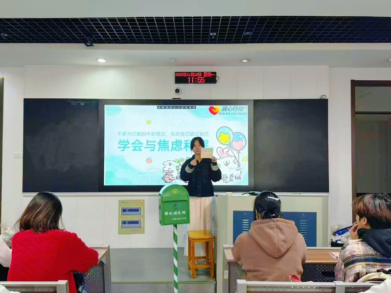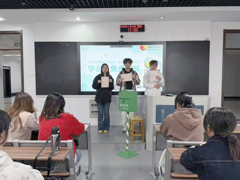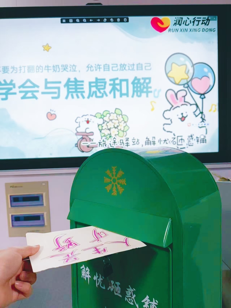 活动前期,工作人员通过班级宣传、社区海报张贴等方式,详细介绍活动主题、参与流程及意义,鼓励学子勇敢倾诉内心烦恼。活动现场,一站式学生社区与“旅途驿站”联合设置“解忧砸惑铺”专属信箱,温馨的设计搭配“落笔诉焦虑,解锁心晴朗”的暖心标语,迅速引发学子关注。50名参与学生纷纷拿起笔,将学业压力、人际关系、未来规划等方面的焦虑与困惑诉诸笔端,以匿名形式写下专属“解忧信”,亲手投入信箱,在安全私密的氛围中释放情绪、卸下包袱。