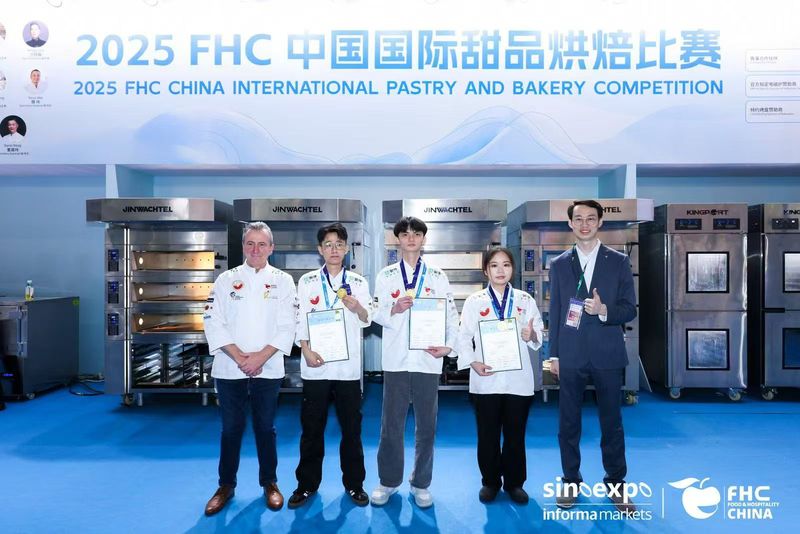 2025年11月12日,她乘胜追击,在世界厨师联合会于上海举办“2025年FHC中国国际甜品烘焙比赛”更具国际影响力舞台上,同时参加“酥芙蕾现场制作”和“主题下午茶展评”两项赛事,再次凭借过硬实力,将一枚金奖和一枚银牌收入囊中。
