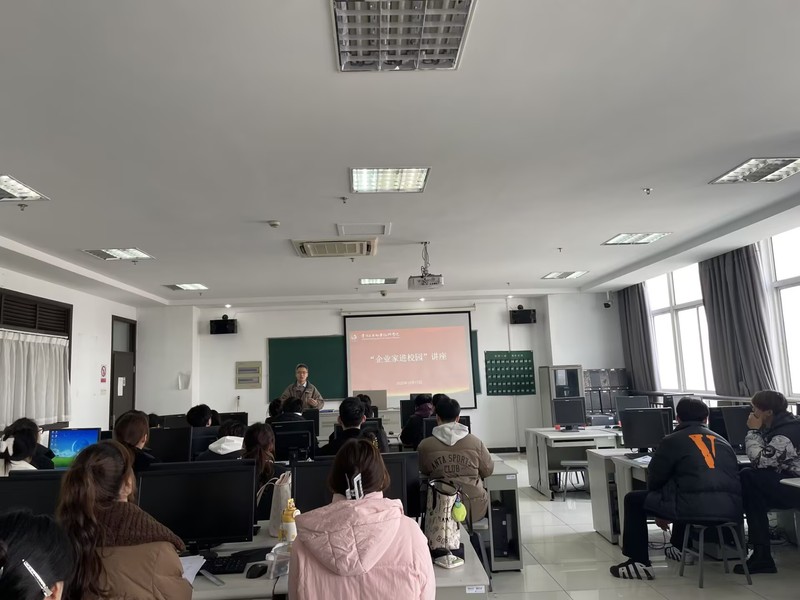 课堂上,同学们认真聆听,积极提问,就职业发展路径、实习准备、行业新技术应用等话题与储总展开了热烈交流。不少学生表示,此次讲座不仅增强了他们对行业的认识,也为接下来的实习阶段指明了方向,收获了宝贵的职场经验与人生启迪。