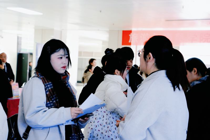 招聘现场,各企业通过摆放宣传展板、发放招聘手册、现场宣讲等形式,详细介绍了企业的发展历程、企业文化、岗位设置及人才培养计划。同学们手持精心准备的简历,有序穿梭于各个展位之间,主动与企业招聘负责人交流沟通。他们围绕岗位需求、实习内容、职业发展前景、薪资待遇等问题积极提问,展现出扎实的专业素养和饱满的求职热情。常州文璞酒店、张家港华芳金陵酒店等企业负责人也纷纷表达了深化合作的意愿,期待建立长期稳定的人才输送渠道。
