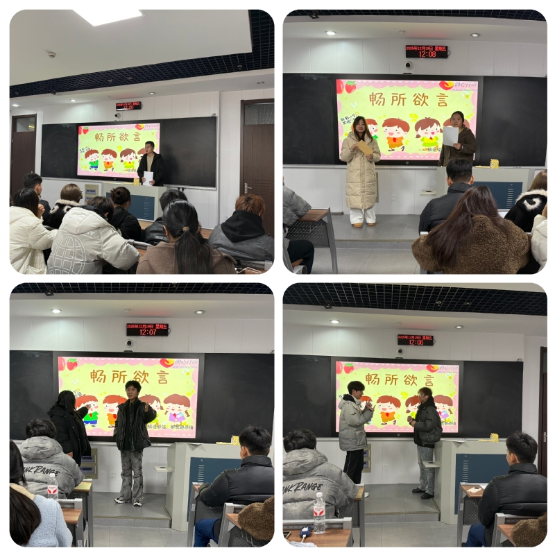 在“班级畅所欲言”环节,同学们围坐在一起,打开心扉畅聊。大家从学习生活中的小困惑,到未来规划的小目标,从校园里的温暖瞬间,到成长路上的难忘故事,彼此交流倾诉,互相鼓励支持。现场氛围轻松融洽,同学们在交流中增进了理解,拉近了距离,凝聚了班级向心力。