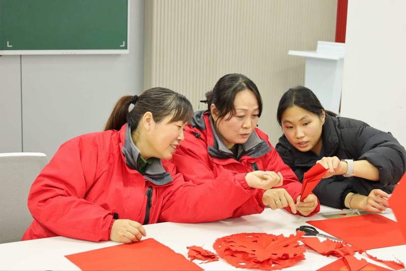 此次活动特别在“一站式”学生社区内开展,打破了传统的活动场地限制,将文化育人阵地延伸至学生生活区的核心。师生与物业服务人员携手合作,亲密互动,不仅让同学们深刻体验了传统文化的魅力,更在共同的劳动创作中增进了理解,深化了情谊,切实增强了“一站式”学生社区的凝聚力与归属感,为即将到来的新年绘就了一幅生动温暖的画卷。