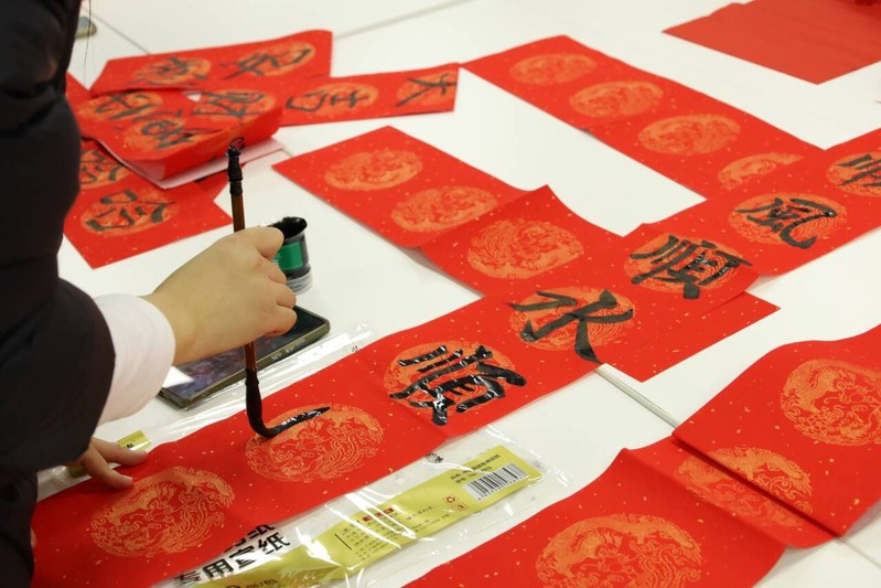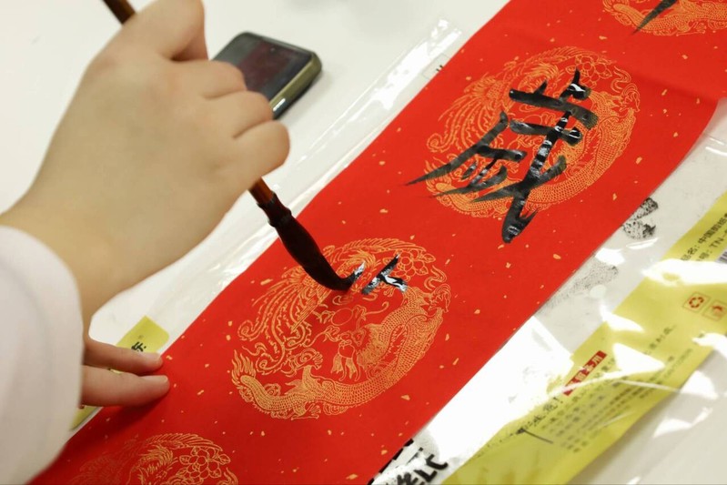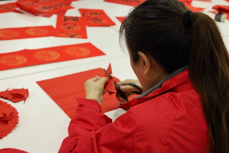 活动分为“巧手裁春”剪纸和“墨韵迎福”春联书写两个模块。在剪纸活动环节,红纸折叠,剪刀穿梭,同学们与宿管阿姨们相互切磋,耐心指导。不一会儿,各式精巧的窗花便跃然桌上,既有传统的“福”字、生肖图案,也不乏同学们结合专业特色创意设计的康养主题纹样。书写对联环节更是墨香四溢,擅长书法的同学挥毫泼墨,一副副寄托美好祝愿的春联一气呵成;初次尝试的宿管人员和同学们也兴致勃勃,在旁学习握笔、运笔,写下对新年的朴素期盼。